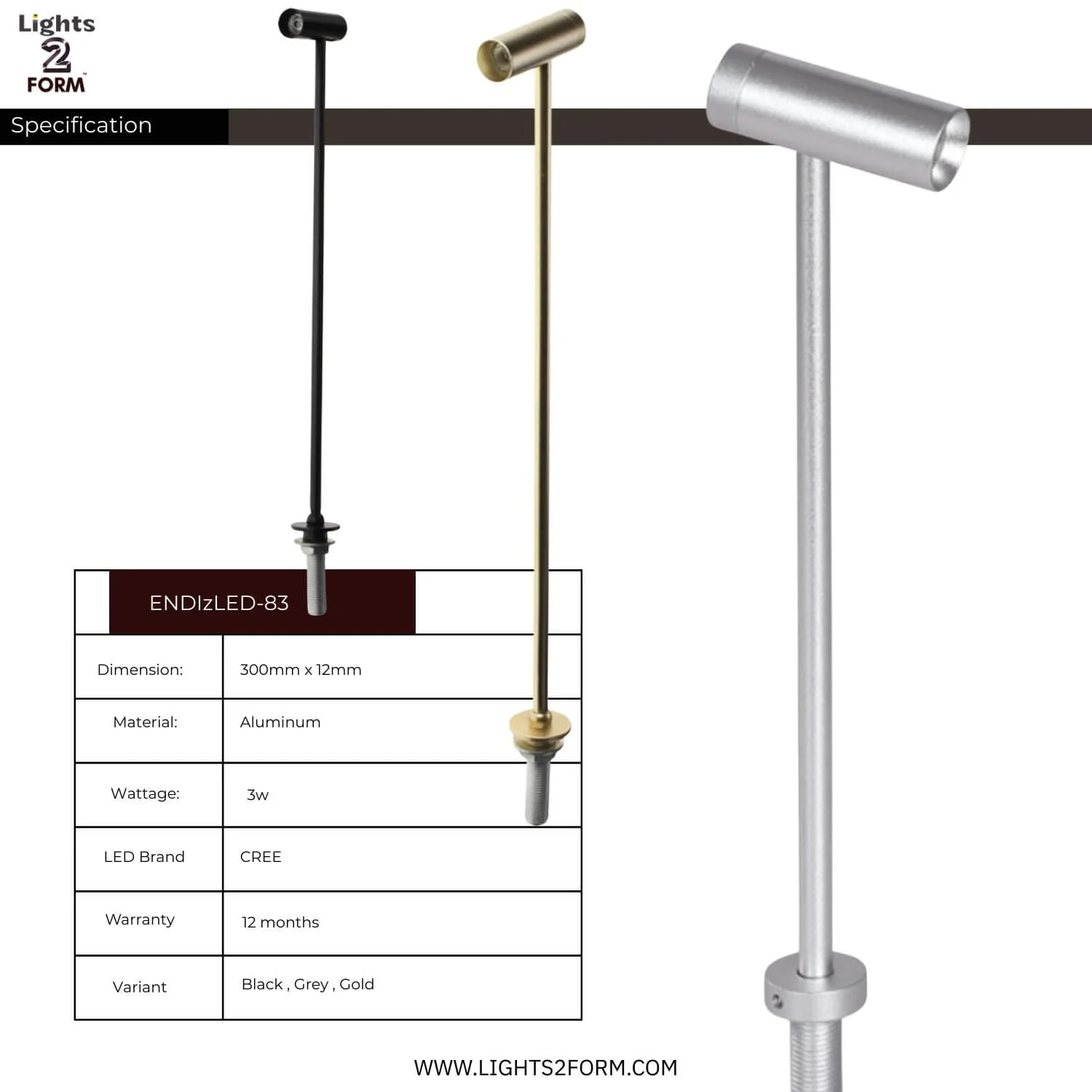 Elevate your showcase with the slim, precision LED spotlight built specifically for jewelry and small-item displays. The ENDlzLED-83 combines a minimalist aluminum body with a focused CREE LED to bring out the brilliance, color and detail of rings, watches and other fine pieces — without distracting from the product itself.
